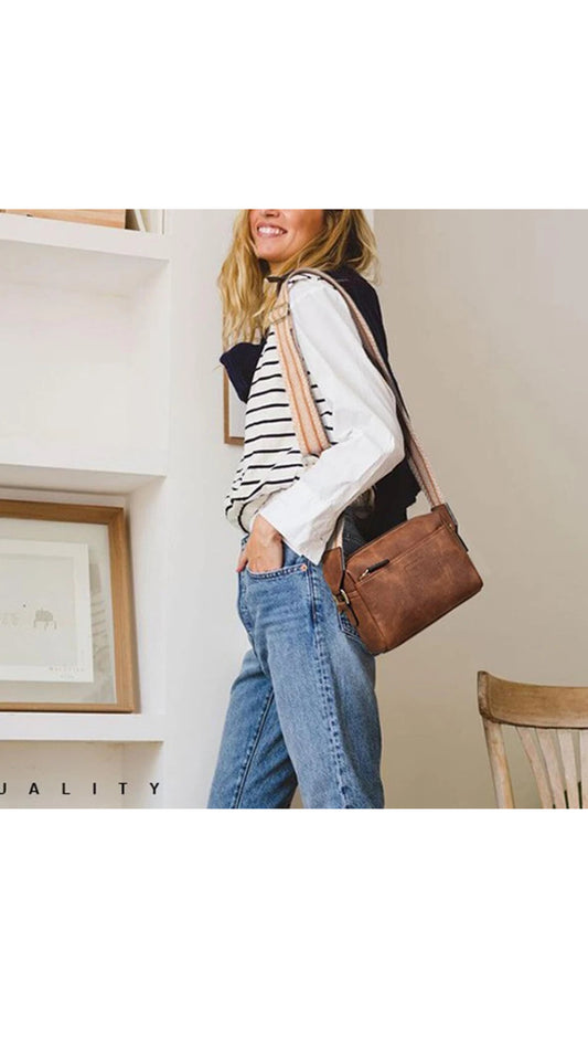 Moderne Damen Kleine Umhängetasche Crossbody Tasche Schultertasche aus PU-Leder Braun