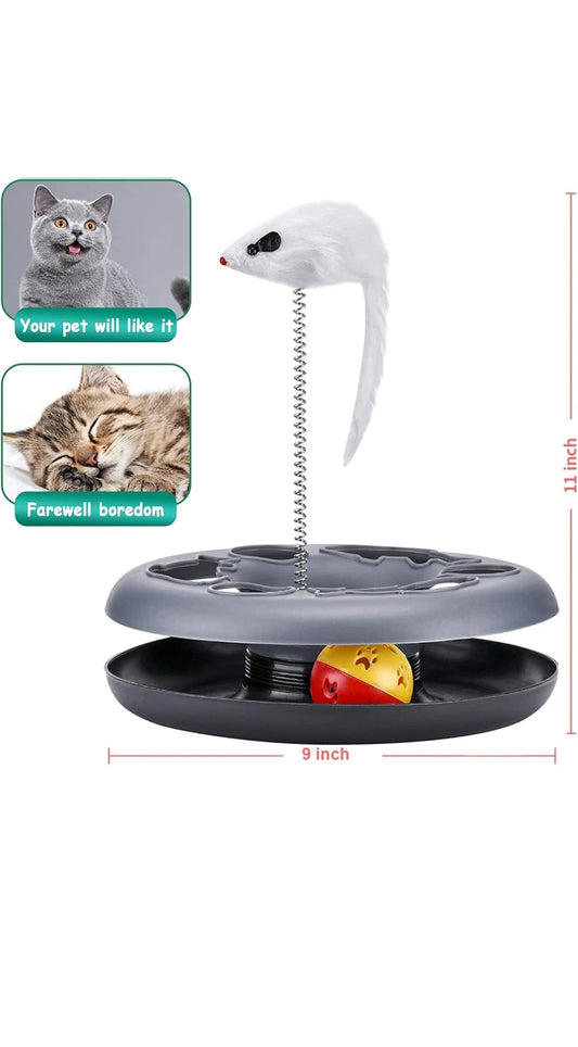 2 Stück Interaktives Katzenspielzeug Kugelbahn mit Maus und Ball - Grau