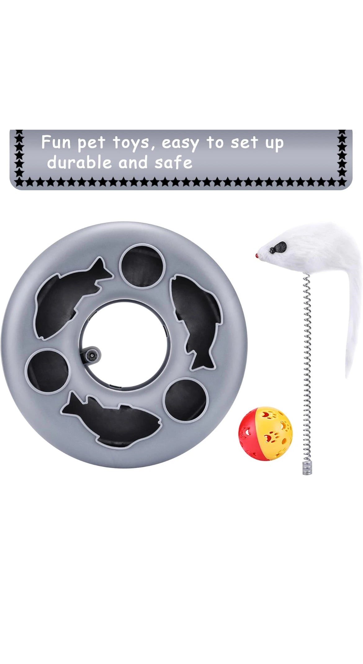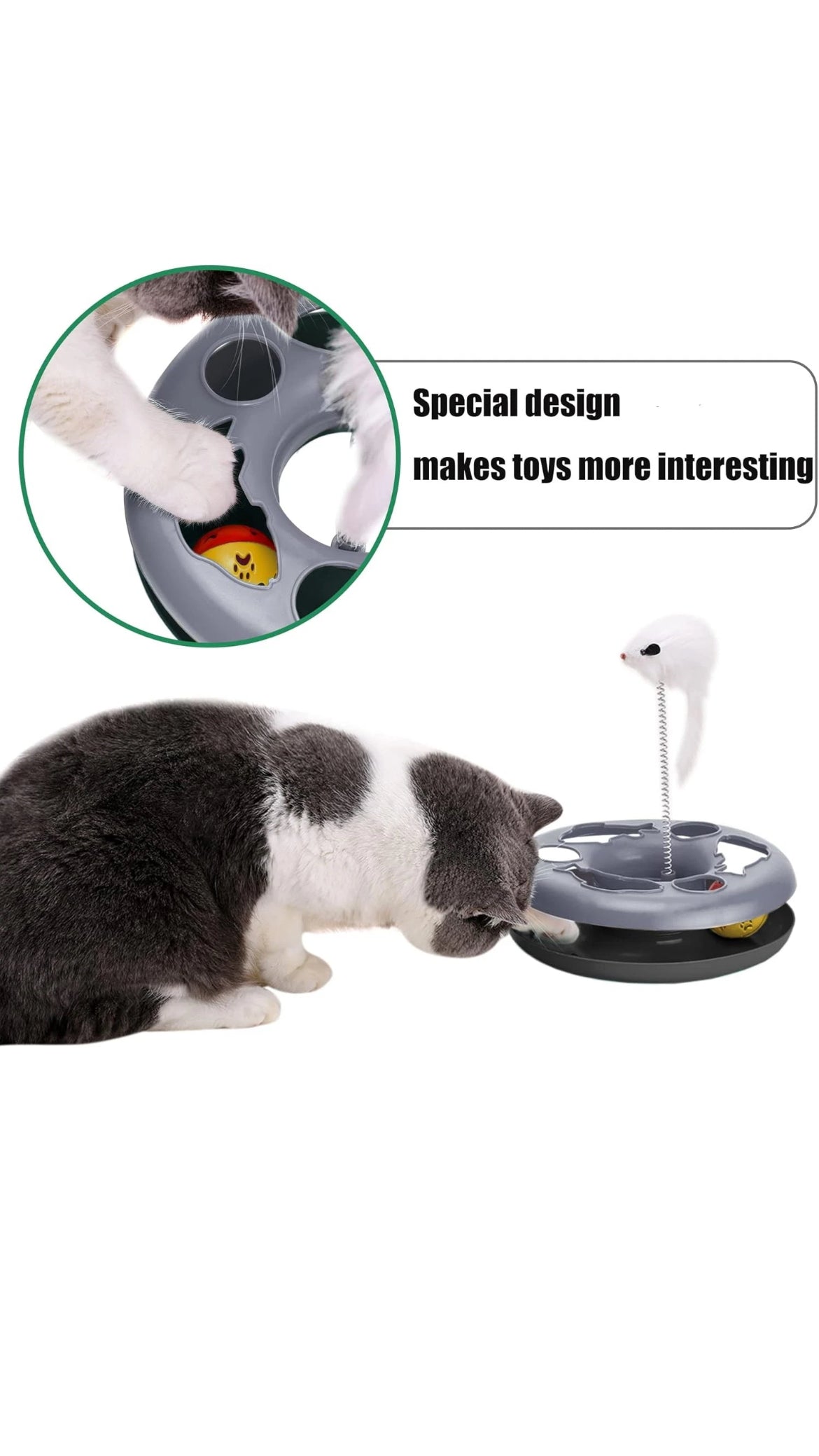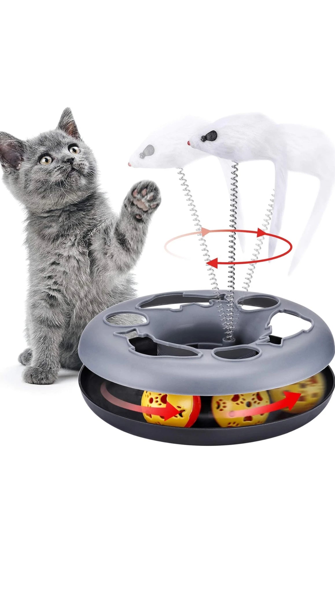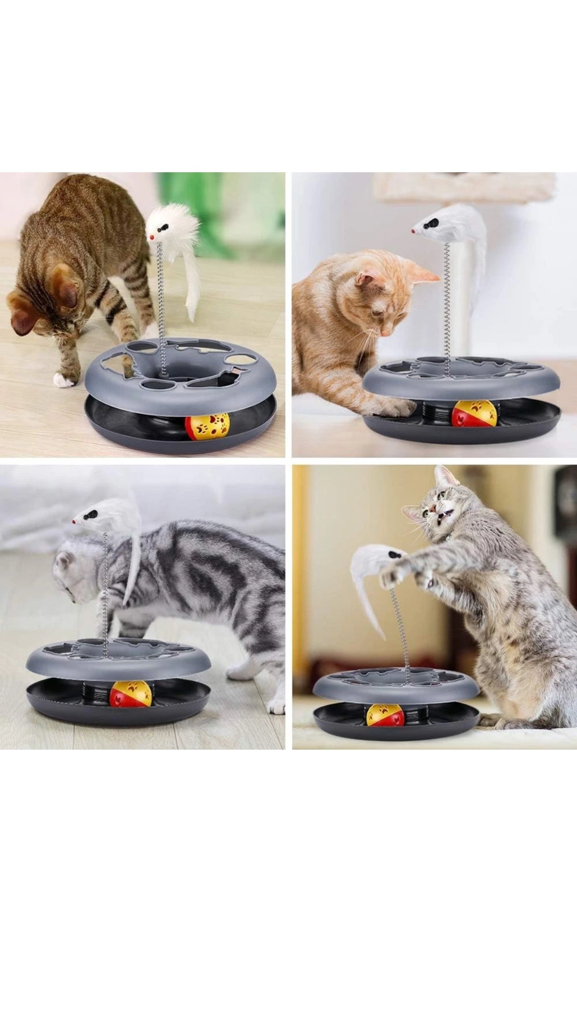 2 Stück Interaktives Katzenspielzeug Kugelbahn mit Maus und Ball - Grau