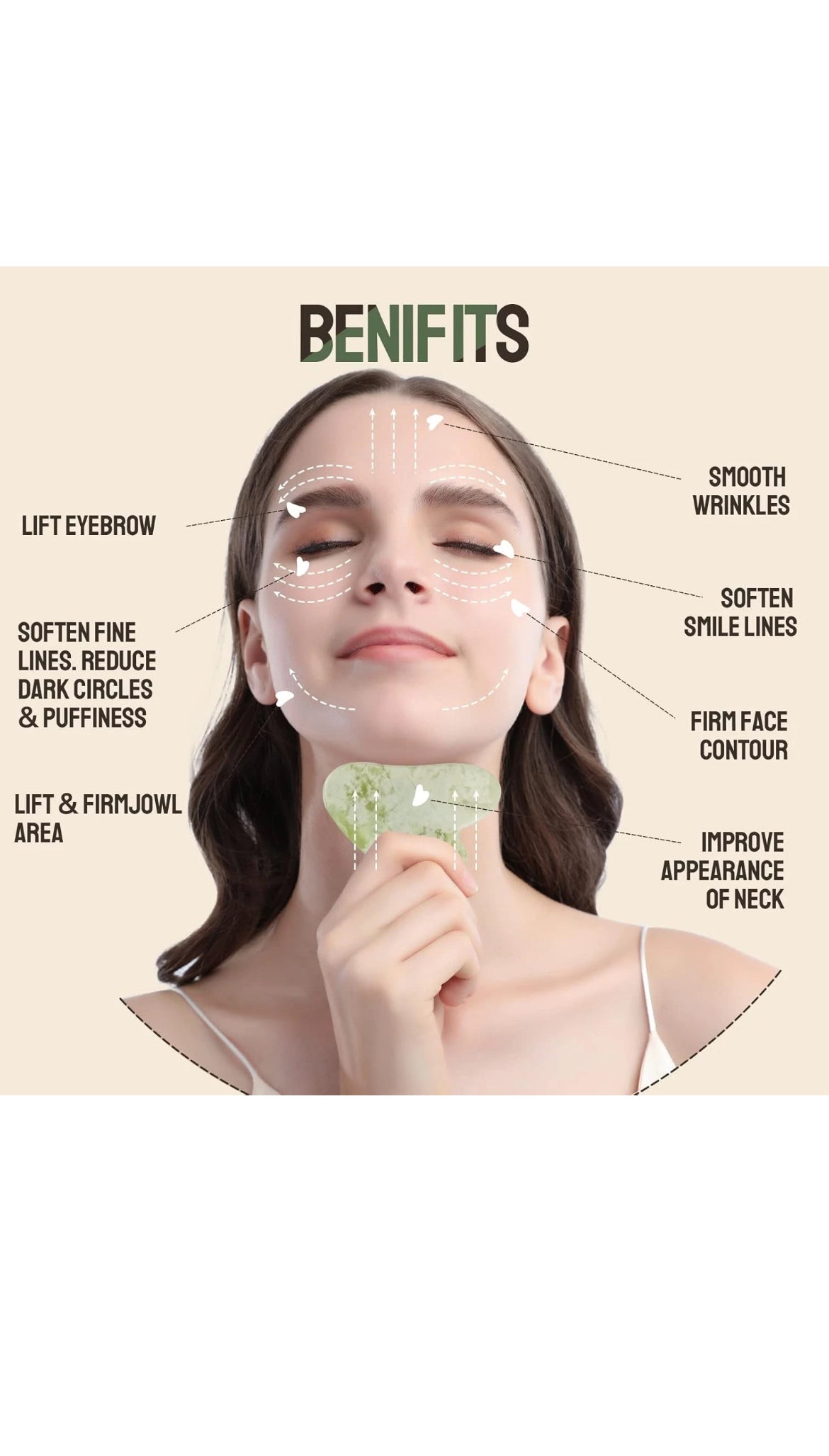 Vielfältige Verwendungsmöglichkeiten: Gua Sha kann nicht nur im Gesicht angewendet werden, sondern auch an anderen Körperstellen wie dem Nacken oder den Schultern zur Linderung von Verspannungen.